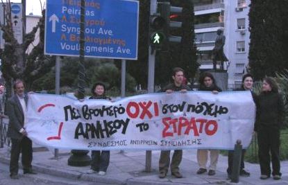» Babis Akrivopoulos on trial for "insubordination". As a pacifist and a conscientious objector I do not acknowledge any crime of “insubordination” neither during “peace”, nor “war”, nor at any other time for that matter. » Colombian conscientious objector Diego Rico illegally recruited on 23 February 2008, began a hunger strike in protest. » Turkish conscientious objector Halil Savda was arrested again during a solidarity demonstration for imprisoned conscientious objector Ismail Saygi. |